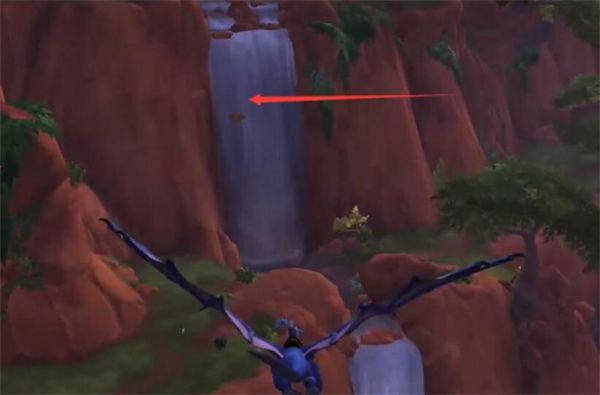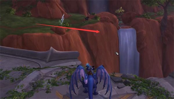 骑乘飞行坐骑,从瀑布上方飞至靠近其顶端的石质平台。平台并不宽敞,建议缓慢调整高度后降落,避免错过目标点位。