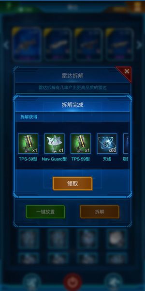 不过对于指挥官而言,上场战舰的规模始终保持稳定,雷达却通过这两个途径源源不断地输送进站。好在经过研究,一套完整的雷达拆解体系新鲜出炉。指挥官可点击雷达站右下方的“拆解”按钮,拆解暂不需要的雷达。每次放置并拆解雷达必定获得矩形波导管,并有概率获得改进雷达基础属性的天线以及具有不同属性品质的全新雷达。银河战舰雷达拆解的出现,能帮助指挥官一次性成功解决雷达囤积、废物利用两大问题。