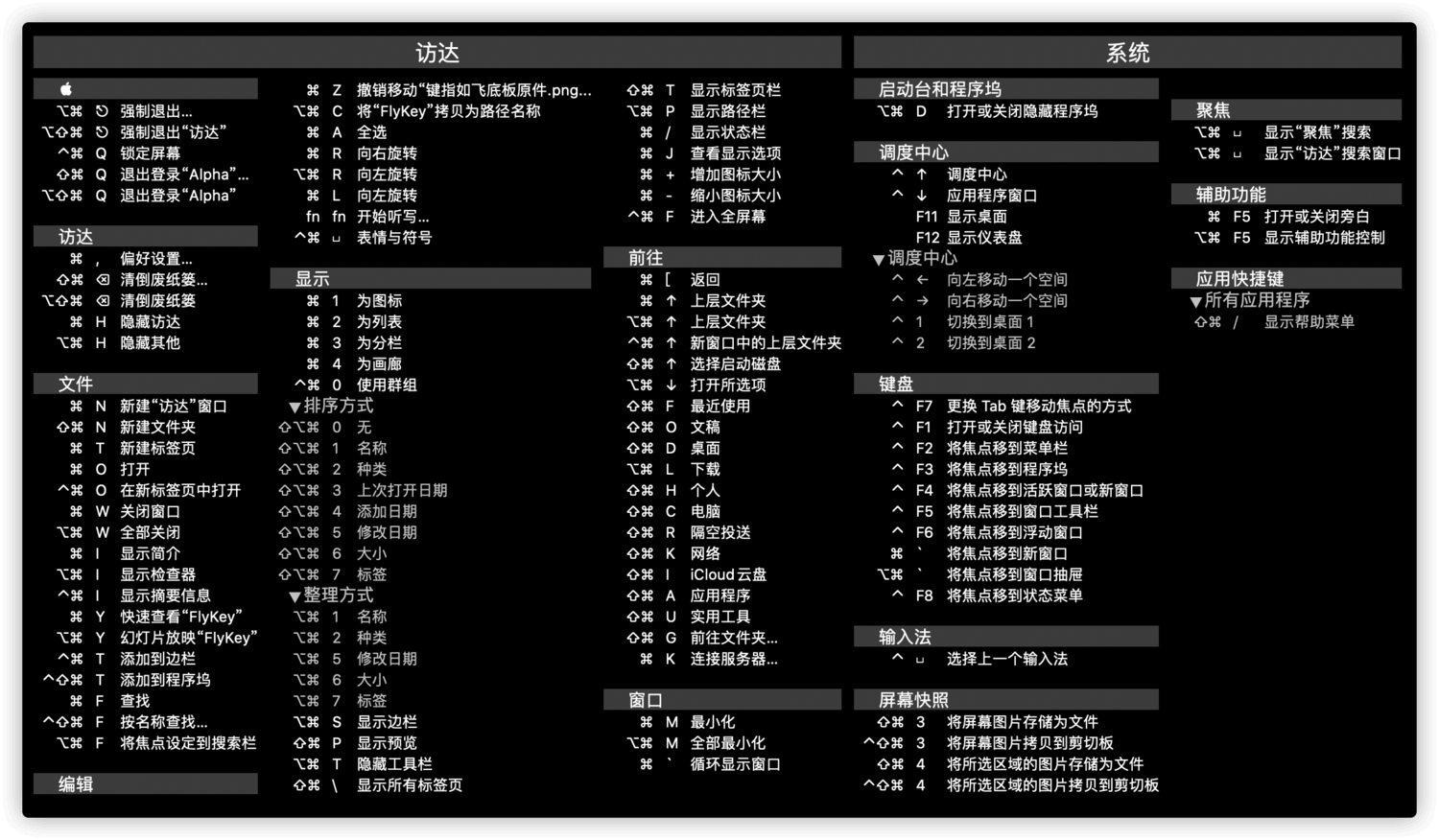 更多快捷键