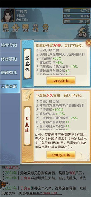 普通玩家一天只能钓两次鱼,而有一种方法可以增加玩家的钓鱼次数,就是购买天庭的官职,天庭官职有节度使等,售价分别是三十元一个月和一百九十八元永久,不同的官职增加钓鱼的次数也不同,玩家如果经常玩的话可以购买一下,这样每天都能增加很多的钓鱼次数,能钓上来的灵鱼的数量也就更多了。
