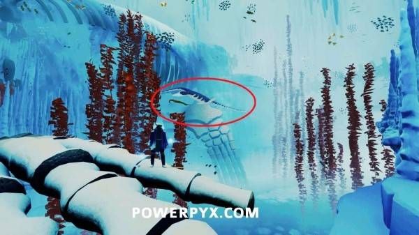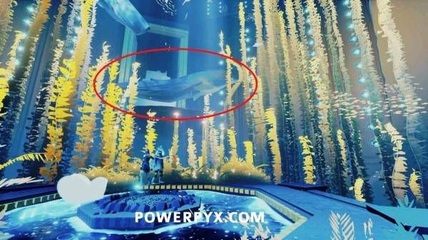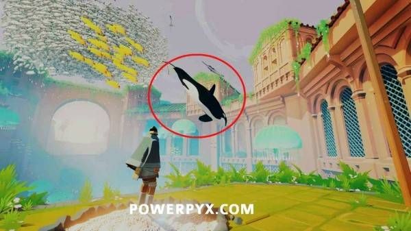 在巨大圆形房间中间激活水源点恢复水流后,此区域会出现许多鱼群,其中包含多只抹香鲸,利用新生成的海草可以跳到抹香鲸背部。