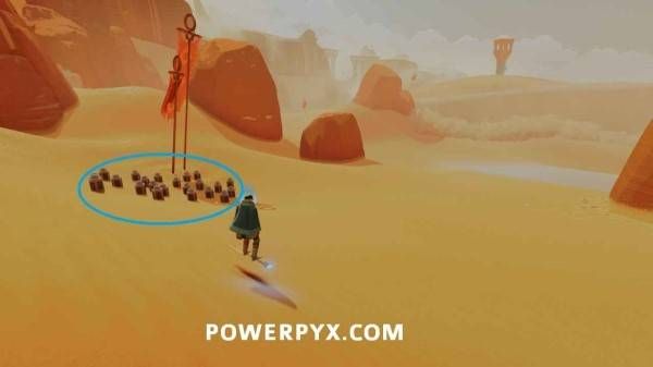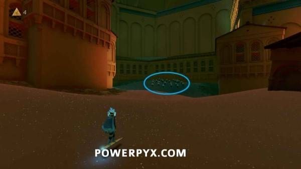 在靠近门口的水球区域,点亮右侧灯笼堆即可在沙子下方看到石板。