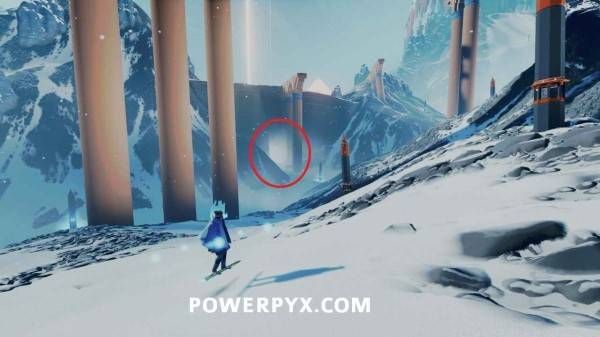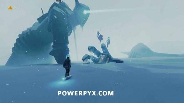在苔原中无法远离主路太远,一直往雕像凝视的方向前进即可。在第三座雕像处,埋在雪里的雕像手中可以看到这块石板。