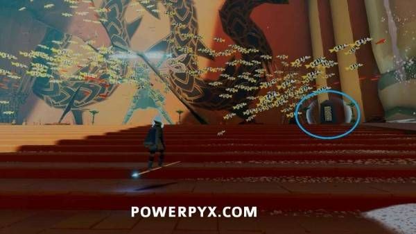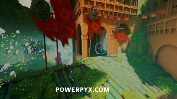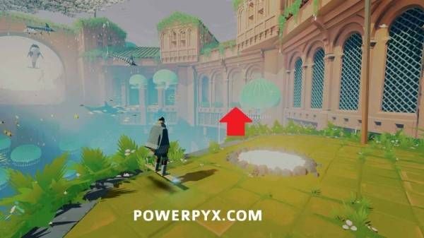激活浮岛上的出水点以开启通往关卡出口的桥的最后一部分之后,使用中间建筑中层的水母跳到其中一个小岛上,即可在顶部看到石板。