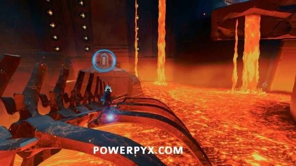 沿着另一根链条往区域右侧前进,在门左边的平台上可以看到这个石板。