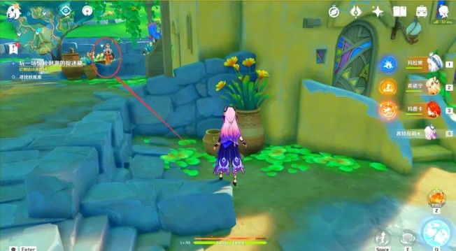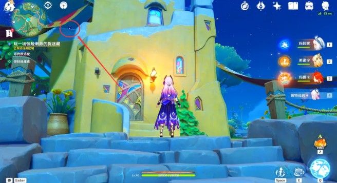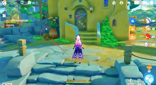 成功找到咔库库后,我们追着它来到房子前面,即可在房子二楼窗户处找到咔库库