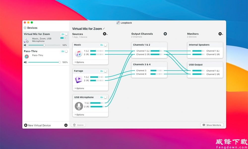 - 结合应用程序和设备,当然,您也可以创建包含来自软件应用程序和物理音频设备的音频的虚拟音频设备。