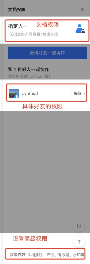 1、电脑端:进入自己创建的任意文档--点击界面右上角的「 权限 」图标--设置文档权限有效期、查看/编辑权限及相应成员即可。