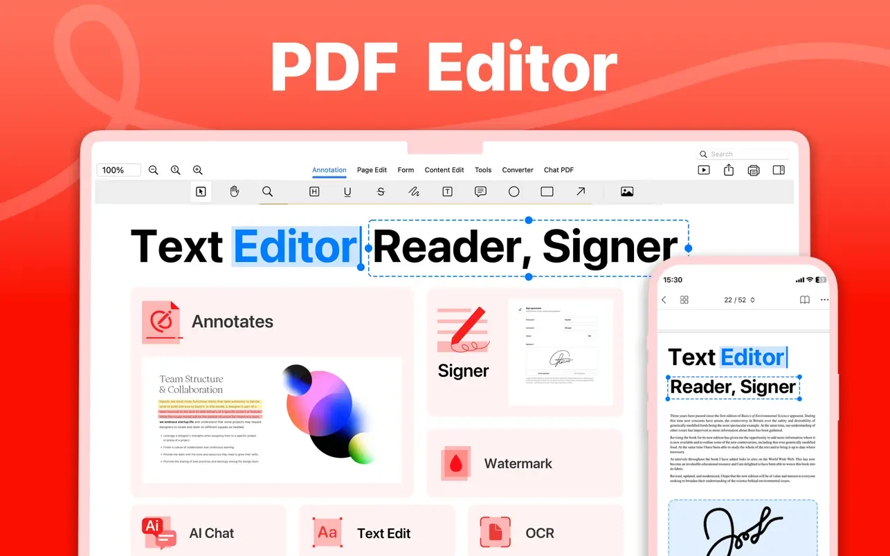 PDF 编辑器是一款功能强大且用户友好的工具,专为处理 PDF 文件而设计。它集成了丰富的功能,让您在处理 PDF 文件时更加得心应手。以下是其核心功能的详细概述: