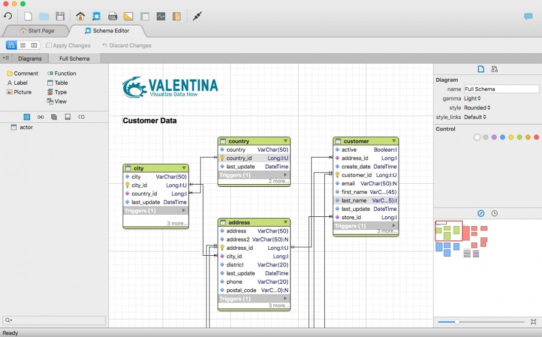 使用首要的Database Schema Editor反向和正向工程工具直观地建模数据库。