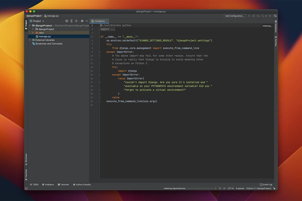 PyCharm是一个Python IDE,提供了一整套用Python编程语言进行高效开发的工具。另外,IDE提供了用Django框架进行专业Web开发的高级功能。
