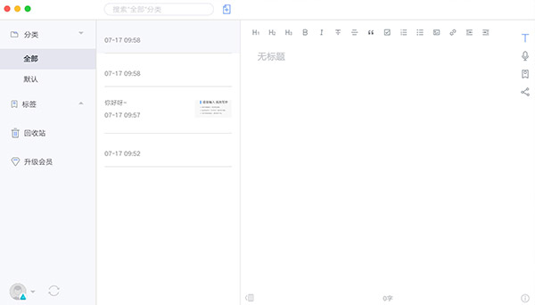 讯飞语记mac版是由科大讯飞专为mac苹果用户们所打造的一款语音记事软件,可以很方便的将录音专为文字,从而解放双手实现轻松转写服务。另外讯飞语记mac版还有着极为简洁清新的界面,以及非常简单的使用方式,让用户们极速笔记。