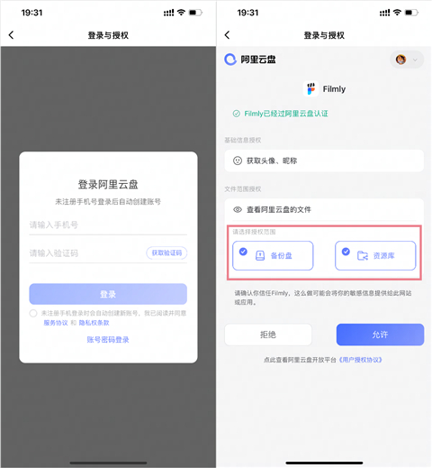 2、登录对应的网盘账号,并确认授权,允许Filmly访问网盘目录。