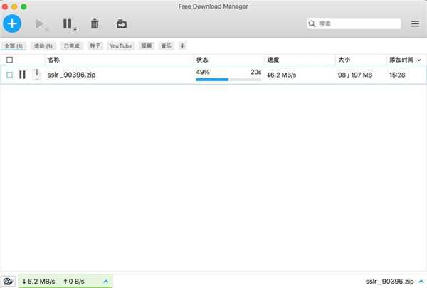 Free Download Manager,简称为FDM。FDM mac版是专为macOS平台上推出的一款下载工具。功能上软件为用户们提供了多点续传下载及管理的服务内容,其中在下载协议的支持上软件包含了HTTP/HTTPS/FTP/BT 协议,基本上日常使用的下载方式软件都包囊在其中了,而你只需要将资源地址复制到此软件中进行下载,然后耐心等待即可。软件为了方便用户们使用,还提供了 Google Chrome、Mozilla Firefox、Microsoft Edge、Safari 浏览器的扩展支持哟。至于速度上呢,个人感觉还是相当快的哟,Free Download Manager mac版采用的是通过文件分割的方式将文件分割为多块以提高下载速度,最高可提升10倍,当然具体的还是需要用户们自行测试啦。欢迎大家下载该版本的软件进行体验。