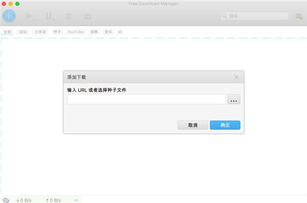 2、输入URL或者选择种子文件,最后点击确定,如图