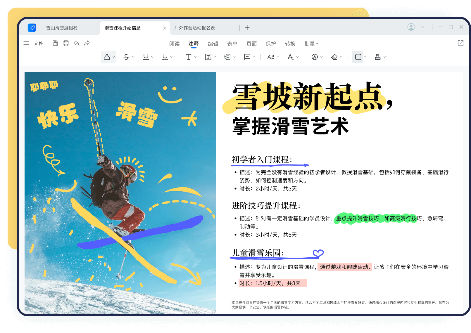 在阅读PDF文档时,添加高亮、下划&删除线、注释等标注。