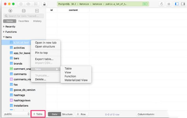 2、完成数据两家点击选择打开数据库、表、模式、函数等模式即可进入数据编辑页面