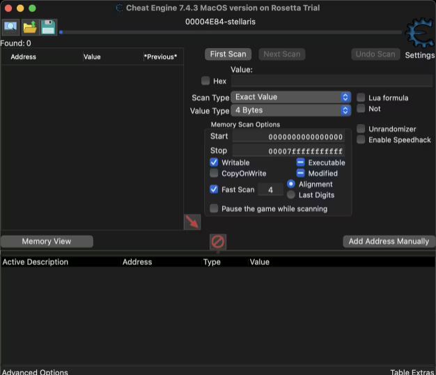 4、Cheat Engine mac版具有16进制编辑、反汇编程序、内存查找工具。