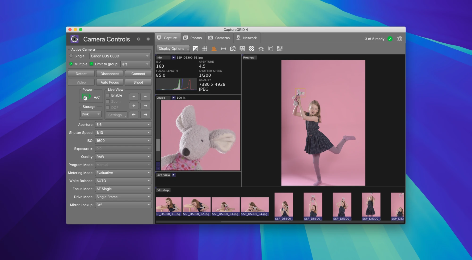 CaptureGRID 是 Mac 上一款用于联机拍摄、远程拍摄和高级相机控制的数码摄影工作流程应用程序。多相机控制,允许您同时完全控制和同步所有相机,包括相机设置、触发、实时取景、照片下载和文件名管理。跨多台计算机的网络操作,允许您扩展摄像机的数量并协调大型多摄像机捕捉设备。