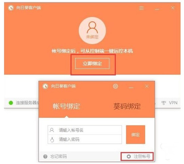 1、首先用户在windows系统也安装向日葵软件,然后登录(没有账号可以注册使用),之后大家可以绑定同一个账号。