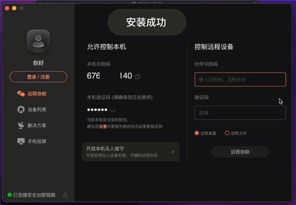 4、最后大家就可以成功安装,进行远程控制和被控了。