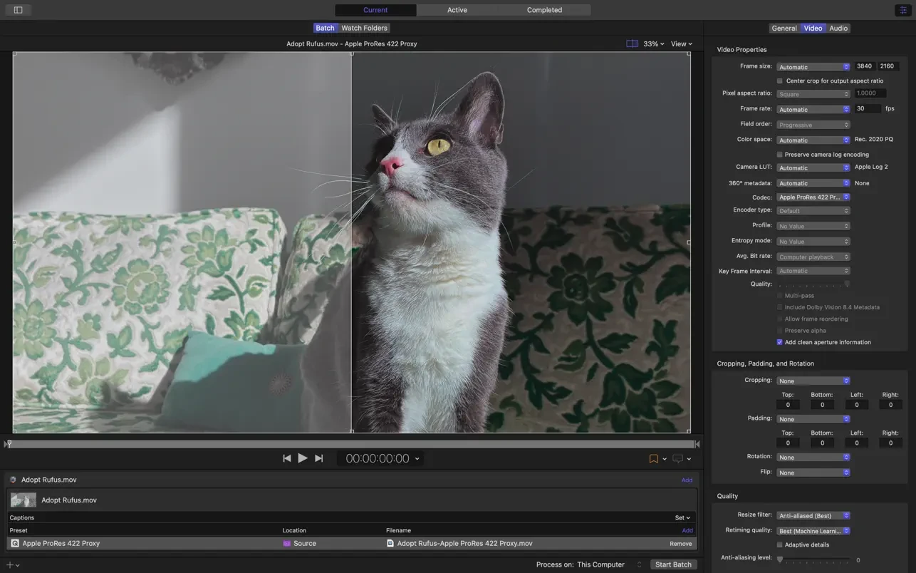 - 编码成各种符合行业标准的格式,包括 HEVC、MPEG-4、H.264、MXF 和 ProRes