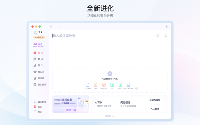 网易有道翻译mac版是针对mac平台特别制作的免费中英文翻译软件,它完美结合了互联网在线词典和桌面词典的优势,“权威词典+网络释义”的组合将各类新兴词汇和翻译收录其中,提供多达30条的例句参考,新增的全文翻译、百科全书及网络单词本让您的英文正式迈入互联网时代。网易有道翻译苹果电脑版在拥有windows平台上所有功能的同时,还添加了强力的屏幕取词和划词功能,让整个操作流程变得更加的方便,在网络流行词汇上面也更加的强大,像ORZ这样的网络词语也可以在上面找到。