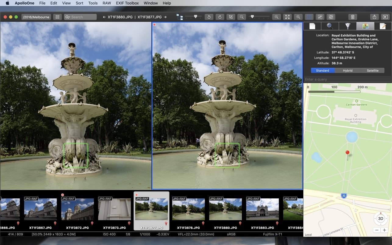 ApolloOne 是 Mac 上一款功能强大的图像查看器和管理器,专为经验丰富的业余爱好者和专业摄影师而设计。设计目标是易用性和速度 – 以及很多。可以说是最快的图像查看器,它可以与您现有的文件夹结构一起使用,而无需将文件导入数据库。它为摄影师提供了一套全面的工具:智能存储卡导入,显示相机自动对焦点,评级和剔除图像,管理元数据,搜索和过滤,批量重命名等等。易于使用的界面,具有独特的HUD显示屏 – 最大化图像显示区域,特别是在Macbook上。浏览历史记录,用于在多个事件或项目之间快速切换。立即旋转,镜像,翻转照片和视频。在不改变图像数据的情况下正确定位 JPEG。具有同步缩放和滚动功能的拆分视图,可实现快速图像比较。具有搜索和编辑功能的 EXIF 元数据检查器。将标签添加到您的收藏夹列表以进行快速筛选。