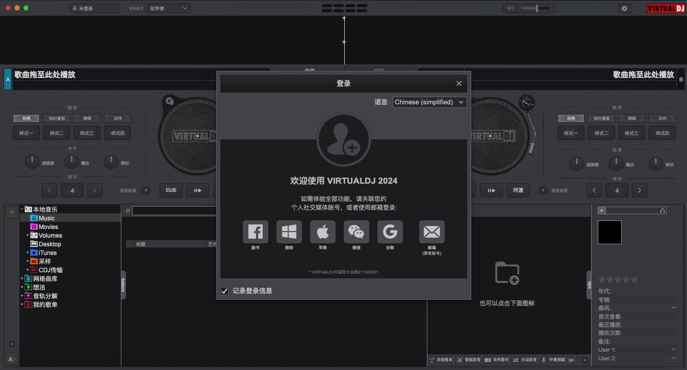VirtualDJ Mac版是一款模拟打碟机的软件,集音频、视频功能与一体,可以让你在同一时间内容播放好几首歌,强大的功能可以满足各种场合的表演,让你成为一名专业的DJ音乐达人。虽然Virtual DJ只能支持mp3格式的使用,但是比起一般的mp3播放器起来,它可以将多首歌串起来做成音乐串烧的效果,只要你对音律有所了解,你可以将自己喜欢的歌放在一起,做成好听的串烧歌曲。当然如果你是想要学习如何做一名专业DJ的话,因为Virtual DJ是模拟现实的打碟机制作的,所以它也可以当做你练习打碟的工具。