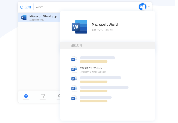 对于部分文档类应用,HapiGo 支持在右边预览区直接显示该应用的最近文档。如此可以省去打开软件后还要再查找文件打开的中间过程,提高了办公效率。