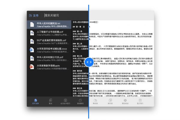 看到文档名称仍然无法确定目标文件?快来体验HapiGo与 macOS 的 QuickLook 同宗同源的预览功能。此功能让你无需打开文件,就可以对文档内容一目了然。预览功能已覆盖常见文件格式,后续将添加更多格式预览功能。