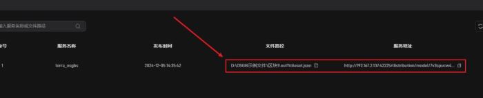 发布服务后,可以快速找到导出文件所在路径和服务发布地址。