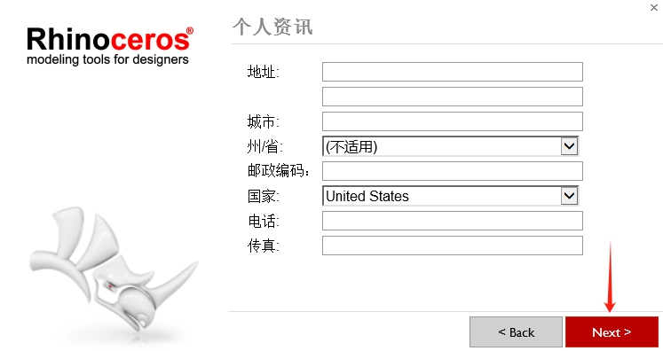 3、输入必填的栏目并勾选同意安装协议,点击Next。