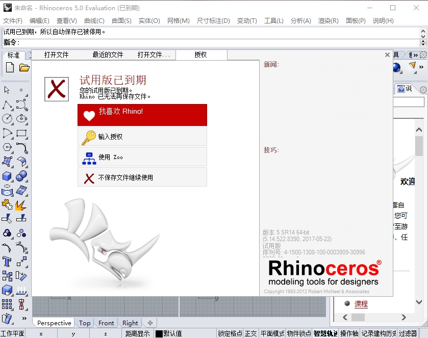 Rhino犀牛5中文版是一款功能强大的三维建模工具,它由美国Robert McNeel & Assoc公司开发,被广泛应用于三维动画制作、工业制造、科学研究以及机械设计等领域。Rhino5能够对 NURBS曲线、曲面、实体、细分几何图形 (SubD)、点云和多边形网格进行创建、编辑、分析、记录、渲染、动画制作与转换,加上可以与其它设计、制图、CAM、工程、分析、渲染、动画以及插画软件兼容!