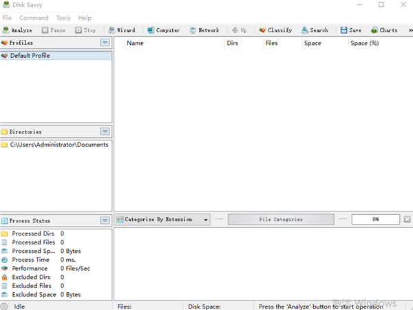 要分析磁盘或目录中的磁盘空间使用情况,请按主工具栏上的“分析”按钮,指定要分析的目录,然后按“分析”按钮。为了分析多个目录、磁盘和/或网络共享,请按“添加”按钮,并添加应该分析的所有磁盘、目录和/或网络共享。