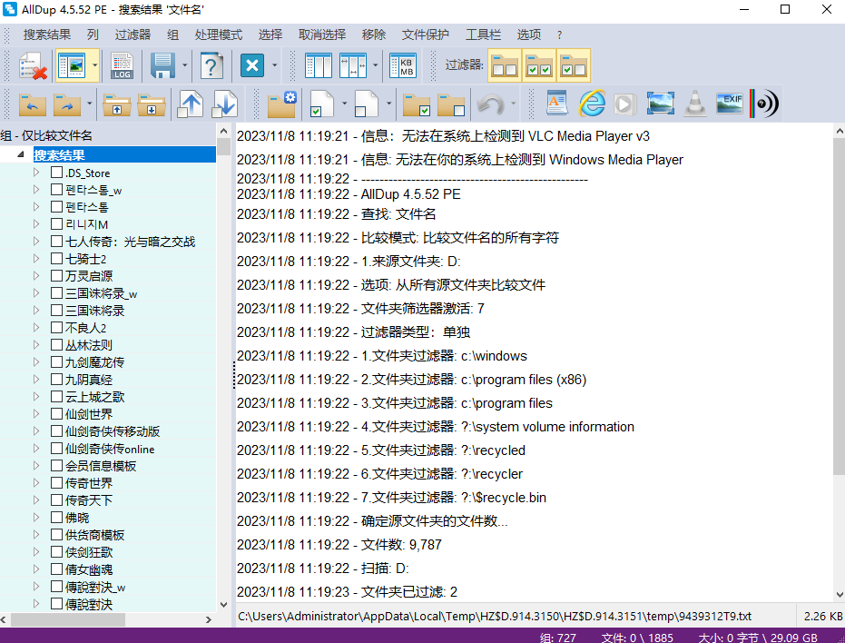 2、AllDup是为了找到你的重复文件,让你删除它们,腾出空间,清理你的系统。安装后,您只需添加要搜索的文件夹或驱动器,然后单击“开始”。在搜索过程中赫然AllDup快捷、全面。重复列在组中,并删除它们,您打开任何组,选择您不需要的重复,然后单击“滴答”按钮。