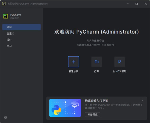 在欢迎屏幕上,单击 新建项目