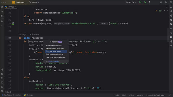 借助 AI Assistant,您可以直接在编辑器中获得增强的代码生成、无需复制代码即可回答项目相关查询的上下文感知 AI 聊天,以及提供更全面结果的项目感知 AI 操作。 为了提高代码更改的清晰度,LLM 代码建议中集成了新的差异视图。