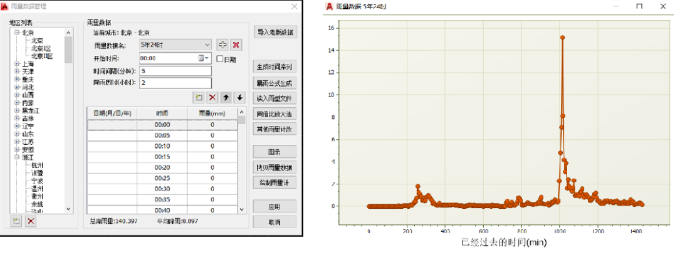 软件支持通过多种方式创建降雨模型,真实模拟整个降雨过程,可设置项目地表类型对应的下渗模型和地表排水参数,真实模拟汇流过程,使得整个产流过程更加符合真实场景。