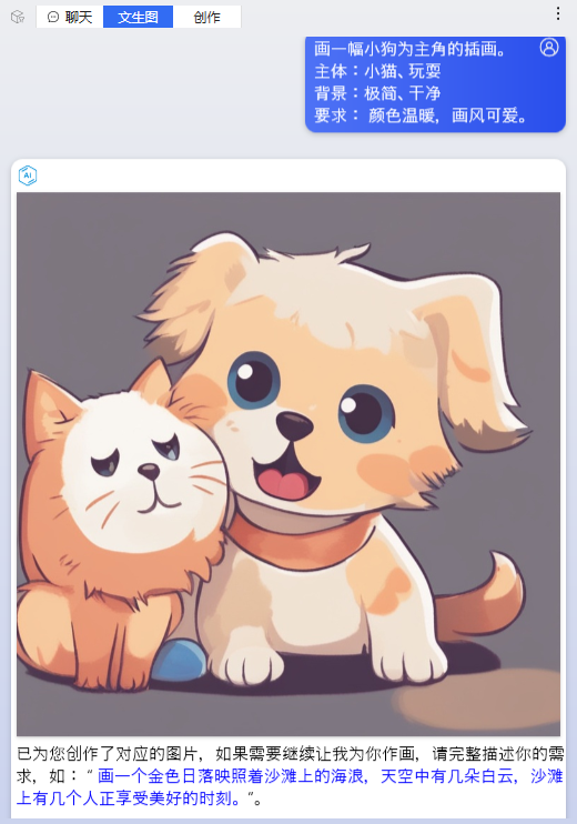 用文字描述即可生成对应的图片,描述越详细内容会更符合。