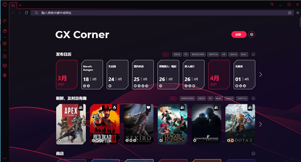 欧朋GX(Opera GX)浏览器是一款基于谷歌Chromium内核开发的,专为游戏打造的高性能电脑浏览器。采用了极简设计风格,注重用户的个性化体验和操作便捷性。首先,欧朋GX浏览器在游戏方面拥有出色的表现,其中包括各种游戏的发布时间,并且还能设置CPU与网络加速。它在加载网页和处理多个标签页时都十分迅速。内置的硬件加速技术能够利用计算机的硬件资源,提升页面加载速度和网页渲染效果,让用户畅享顺畅的浏览体验。