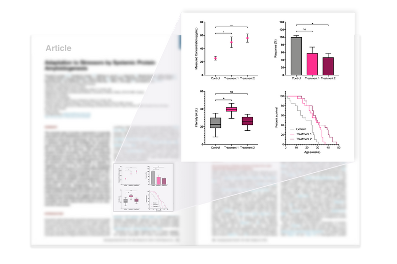 减少发表所需的时间。 GraphPad Prism允许您自定义导出(文件类型、分辨率、透明度、尺寸、色彩空间 RGB/CMYK),以满足期刊的要求。 设置默认值以节省时间。