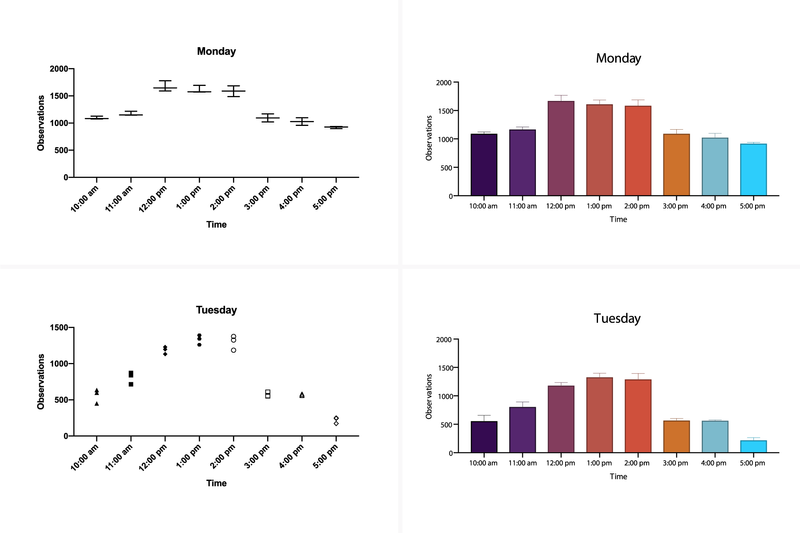 轻松创建同时显示单个点(散点)、均值(或中值)线和误差线的图表