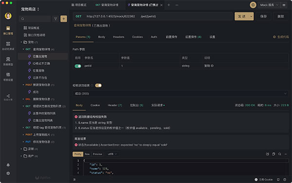 Apifox在遵循 OpenApi 3.0 (原Swagger)、JSON Schema 规范的同时,还提供了非常好用的可视化文档管理功能,零学习成本,非常高效。内置 Mock.js 规则引擎,非常方便 mock 出各种数据,并且可以在定义数据结构的同时写好 mock 规则。支持添加“期望”,根据请求参数返回不同 mock 数据。最重要的是 Apifox 零配置 即可 Mock 出非常人性化的数据,还能预执行脚本、后执行脚本、Cookie/Session 全局共享 等功能。如果对API 文档、API 调试、API Mock、API 自动化测试这方面有需求的话小编推荐您可以在本站下载该软件使用,该软件高效、及时、准确、非常好用!