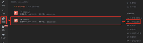 使用方法:打开 DOCWAY,进入对应项目,鼠标移到左上角更多功能点击分享项目(注意仅项目创建者有权限分享项目),创建分享 (注意“阅读密码”必须设置为空),然后复制分享地址将地址黏贴到下面输入框。如下图所示: