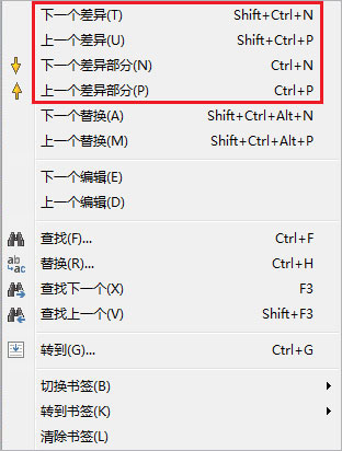 使用Ctrl+N可以快速定位到对比文本的每一个不同之处,您可以按照个人比较文本的要求,点击箭头图标进行左右两侧窗格的差异文本整合工作。您也可以单击工具栏“编辑”按钮,直接在视图窗格修改差异文本内容,如有错误操作可以使用Ctrl+Z撤消。