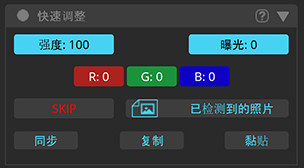 按住Ctrl键并单击(在Mac上按住CMD键并单击)可重置为0(强度=100,曝光=预设值)