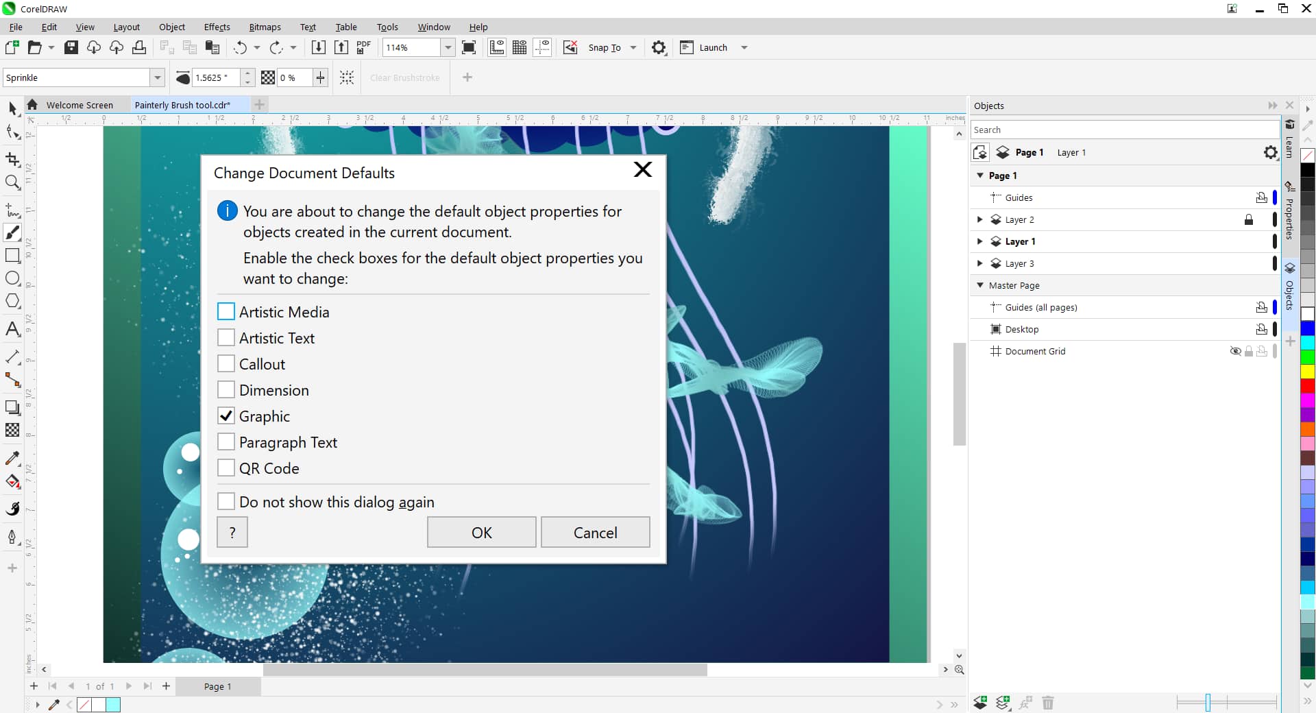 在弹出的“更改文档默认值”对话框中,确保选中“图形” ,然后单击“确定”。