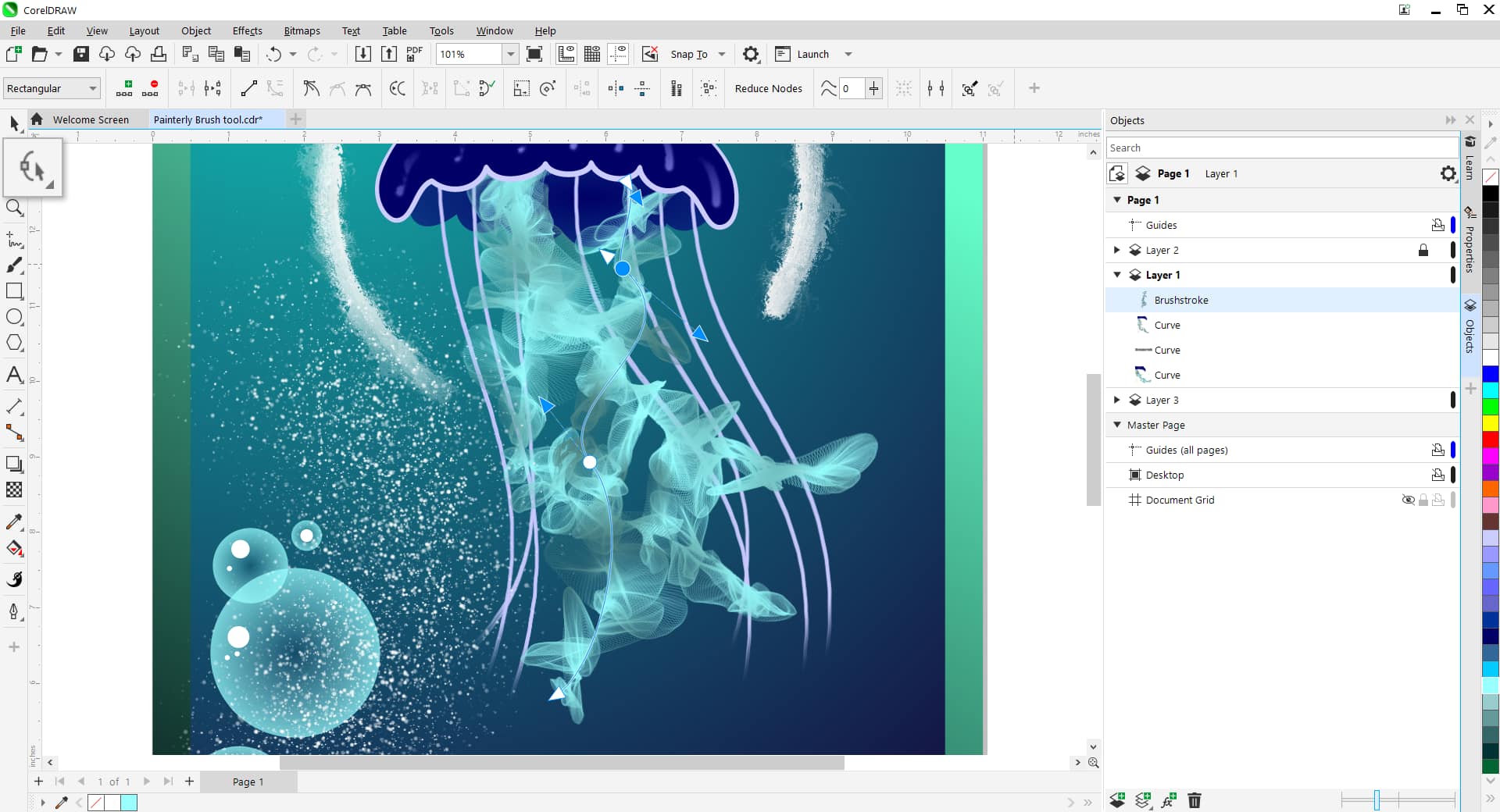 与 CorelDRAW 中的任何矢量对象一样,您可以使用形状工具来修改绘画笔触。