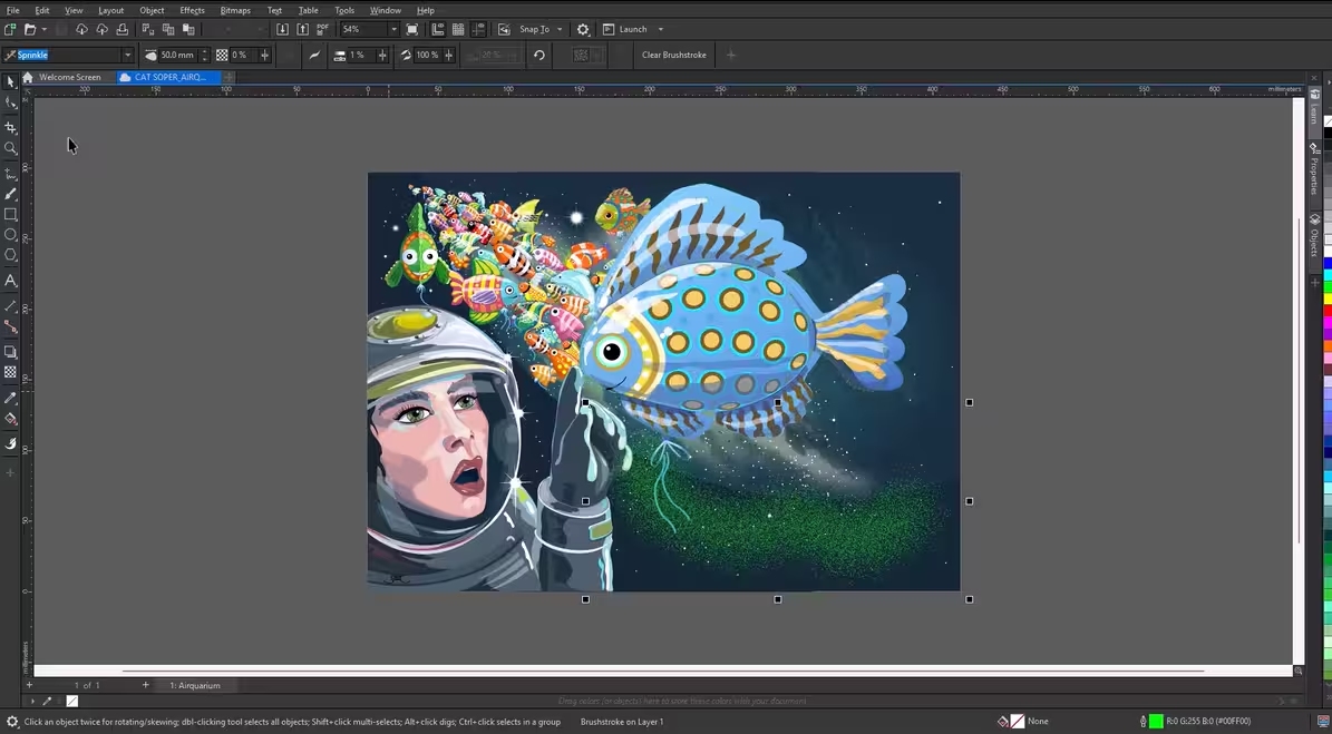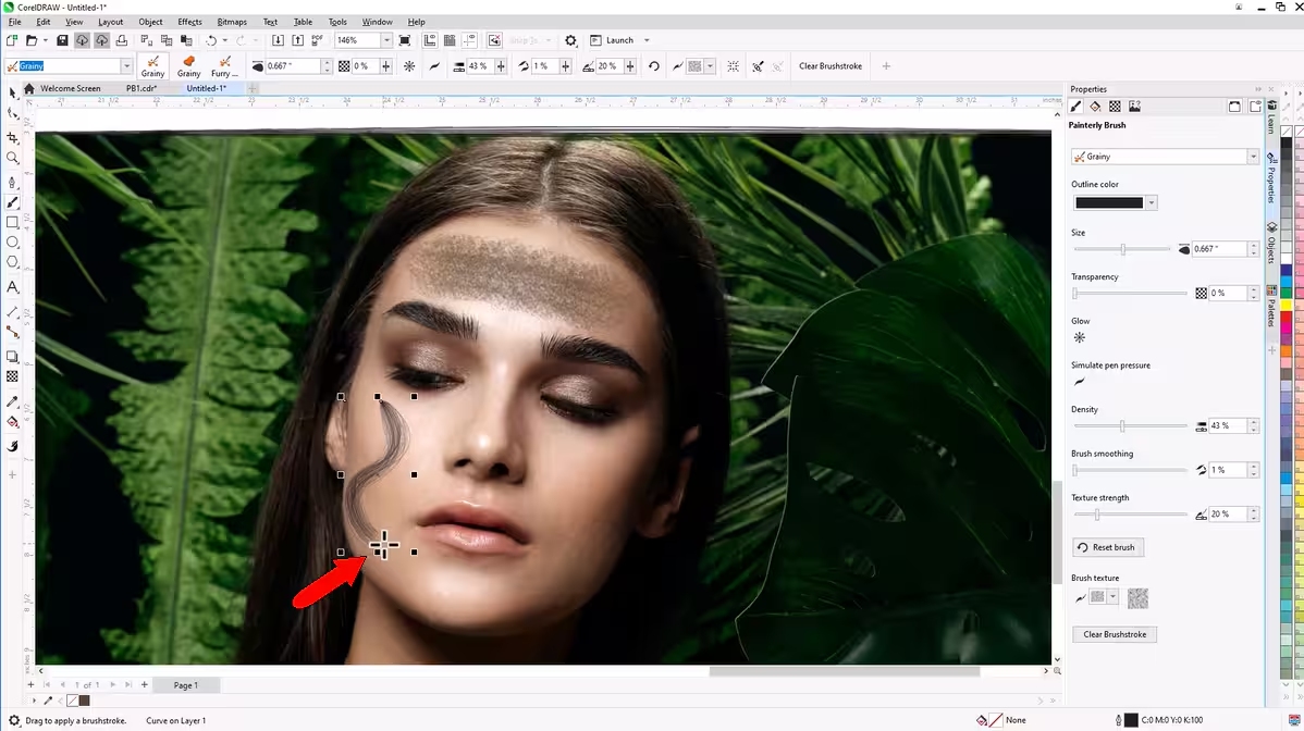 属性栏还控制画笔大小和透明度以及清除笔触按钮,该按钮可删除笔触并将曲线返回到普通矢量对象。
